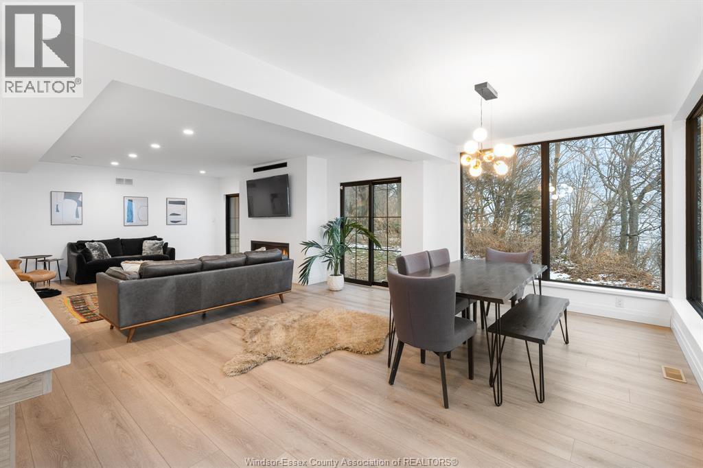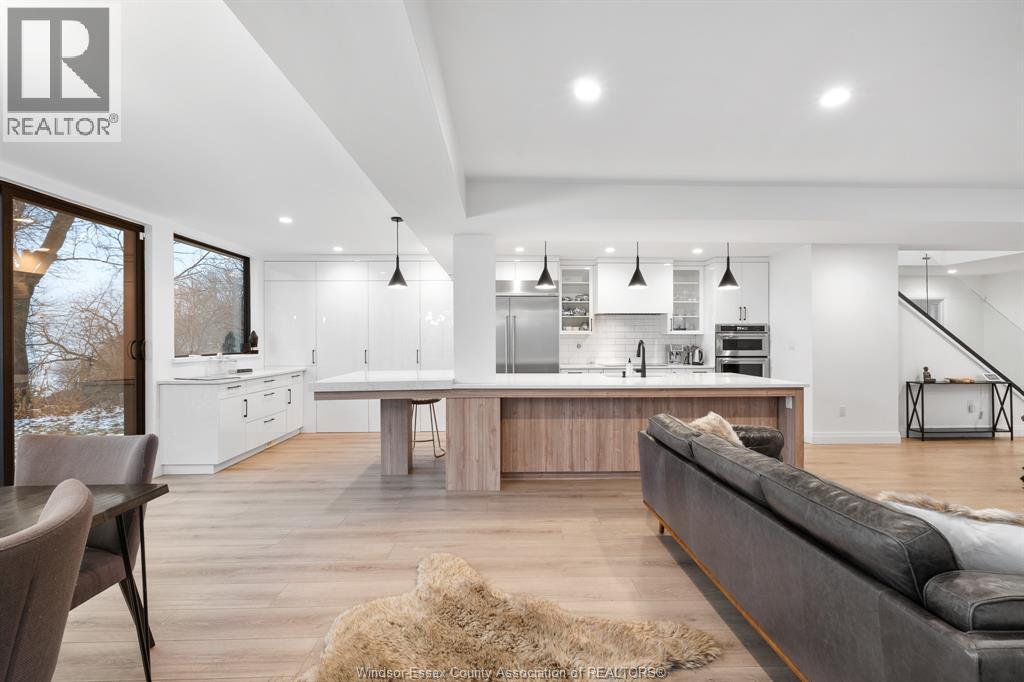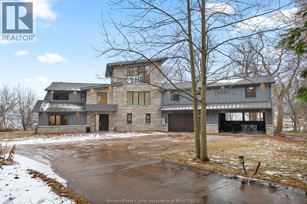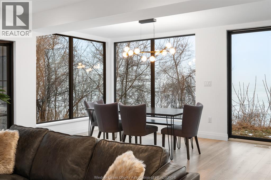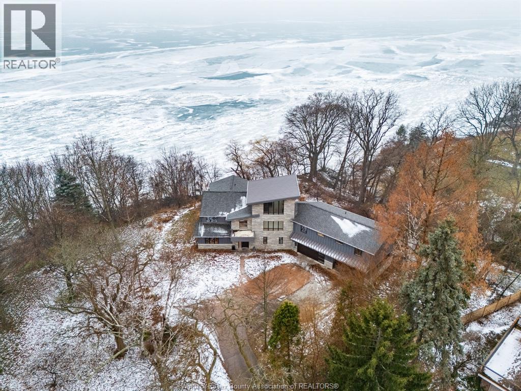 Simply Spectacular! This one-of-a-kind 6 BR, 3 Bath waterfront retreat is a rare opportunity to own a true architectural gem, nestled beside a picturesque ravine with unforgettable lake views in every direction. Designed by renowned architect Philip Fernandes and built new from the ground up in 2020, this nearly 4800 sq ft home blends modern coastal elegance with the beauty of nature in perfect harmony. Every space in this home has been thoughtfully curated to reflect the serene, and meditative design, a true retreat for the senses. With light-toned floors, expansive black-frame windows, and seamless indoor-outdoor flow, the home invites in natural light and panoramic scenery year-round. The chef’s kitchen is a showpiece with Cambria quartz counters, hidden walk-in pantry & open layout made for entertaining. You’ll love the abundant closet & storage space throughout, perfect for effortless living. The private primary wing includes a luxurious ensuite, oversized walk-in, and a generous bonus room with endless flexibility. Climb to the third-storey tower to soak in peaceful views of the lake, ravine, and sky, sunrises and sunsets here are nothing short of magical. Located just minutes to Kingsville’s restaurants, shops, schools, and everyday amenities, this home is perfectly situated for both quiet escape and convenient access. A home of this caliber, design, size and location simply cannot be replicated—don’t miss your chance to own one of the most inspired lakefront properties in the region. (id:4555)